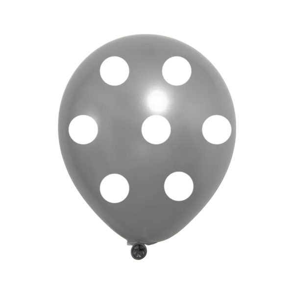 GLOBO LATEX PLATA IMPRESO LUNARES BLANCOS #12 C/10 PZ