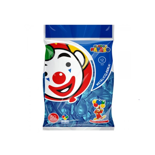 Globo Payaso Metálico Perla Azul 12″